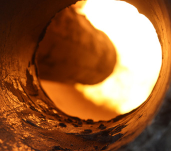锂矿等原料与其它混合料混合后的原料从窑尾筒体高温进入筒体内进行焙烧。物料在陪烧窑内,受窑体斜度和自转的影响,产生径向和横向的移动,物料被带到高处,与高温烟气进行热交换,进而产生热工反应,进而达到焙烧的目的。窑转速受变频电机调节,可根据反应物料反应时间的要求进行调节窑内停留时间,燃烧器配备天然气流量和风量监控和调节功能,满足烟气温度和流量流速的调节功能,进而适应原料的焙烧区间温度。