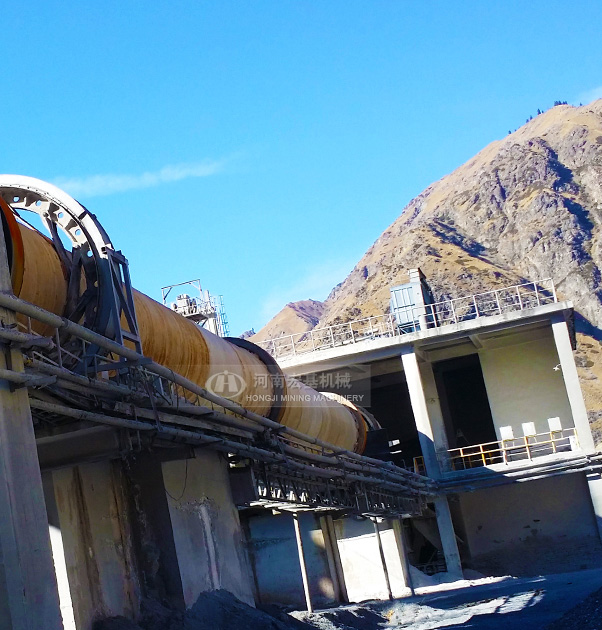 菱镁矿通过窑尾(高的一端)溜槽喂入窑内,由于筒体的倾斜和缓慢的回转,菱镁矿一面沿圆周滚动,一面沿轴向由窑尾(高的一端)向窑头(低的一端)运动;燃料从窑头端通过燃烧器喷入窑内进行燃烧,热量以辐射、对流、传导等多种方式传给菱镁矿,菱镁矿在窑内经过预热、分解、烧成等过程,煅烧成煅白,然后从窑头装置卸出。
