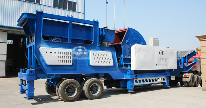 反击式移动破碎站由牢固的机架、反击式破碎机、给料机、振动筛、传送带、电动机和控制箱等组成的一体化可移动破碎设备。该系列机型采用全新制造技术,选用优质高铬板锤、耐磨反击衬板,破碎比大,成品粒形优质,具有更广泛的使用范围。