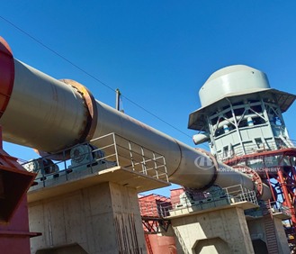 窑尾设置烟室,烟气携带的大颗粒粉尘落入烟室下部的灰斗,窑尾的返料进入配料仓,重新进入流程。烟室侧面设置出风口,窑尾废气进入收尘系统。