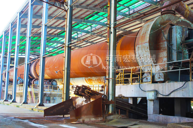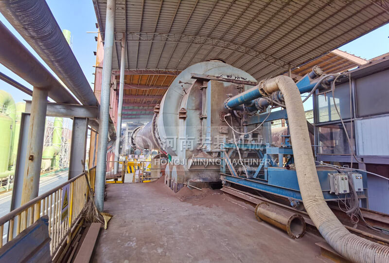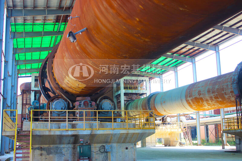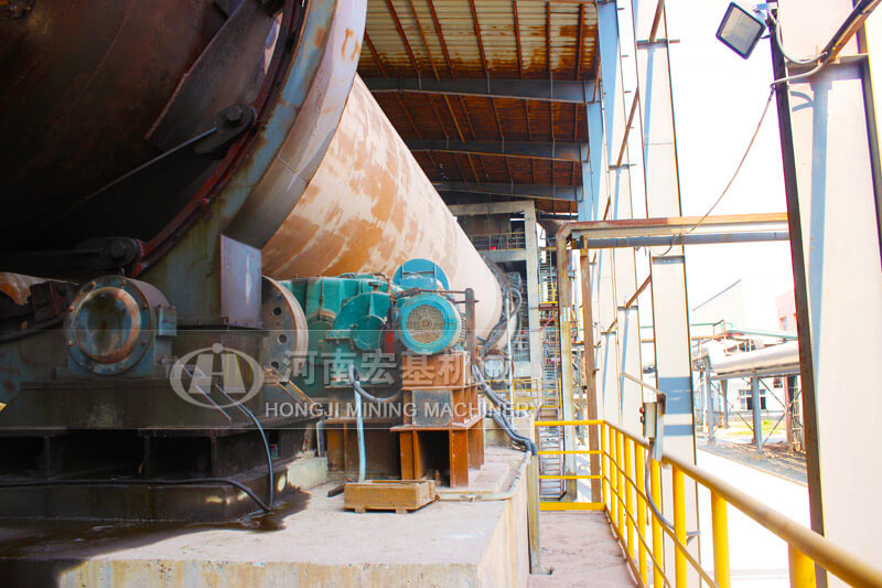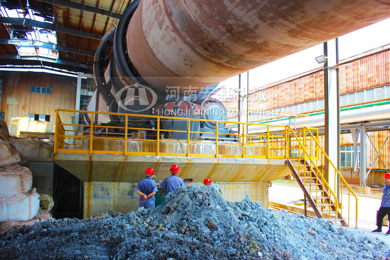 窑的出料口安装一台湿式球磨机,高温的物料进入到球磨机,同时向入磨溜子加入水分,物料在磨机内部的高温环境下,被磨成料浆,发生浸出反应,然后排出磨机,进入下一流程。磨内水分蒸发产生的蒸汽,被窑头的负压抽吸到窑内。