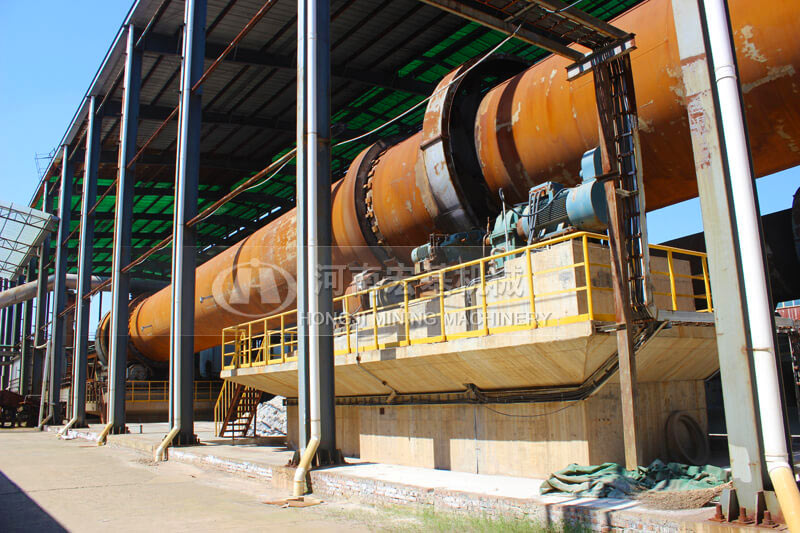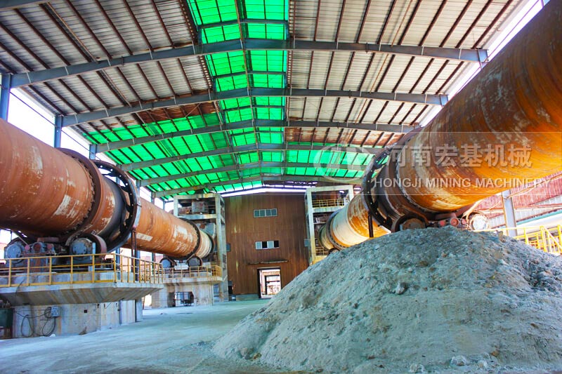 回转窑有一定的斜度,随着窑的不停的转动,物料由高端向低端慢慢前进。从窑头喷入天然气,在窑内进行燃烧,热量被物料吸收,高温下物料发生物理和化学变化,被煅烧成为成品,然后排出回转窑。